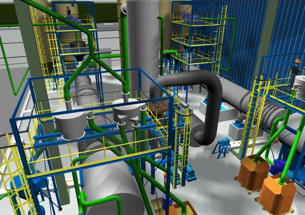 3D-Modell einer Aktivkohlereaktivierungsanlage